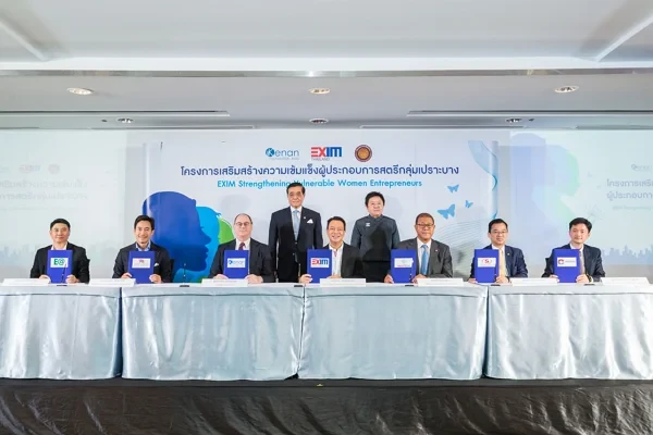 นายอมร ทรัพย์ทวีกุล รองประธานเจ้าหน้าที่บริหาร บมจ.พลังงานบริสุทธิ์ (EA) เข้าร่วมพิธีบันทึกข้อตกลงความร่วมมือกับ ดร.รักษ์ วรกิจโภคาทร กรรมการผู้จัดการ ธนาคารเพื่อการส่งออกและนำเข้าแห่งประเทศไทย (EXIM BANK) นายริชาร์ด เบิร์นฮาร์ด กรรมการอำนวยการมูลนิธิคีนันแห่งเอเซีย และนางสาวโศรยา ฤทธิอร่าม ผู้อำนวยการทัณฑสถานหญิงกลาง และผู้ประกอบการรายใหญ่ ประกอบด้วย บริษัท เวสท์เทค เอ็กซ์โพเนนเชียล จำกัด, บริษัท ซุปเปอร์ เอนเนอร์ยี คอร์เปอเรชั่น จำกัด (มหาชน), บริษัท เสริมสร้าง พาวเวอร์ คอร์ปอเรชั่น จำกัด (มหาชน) และ บริษัท โทรีเซนไทย เอเยนต์ซีส์ จำกัด (มหาชน) สนับสนุนสินค้าจากสตรีกลุ่มเปราะบางใน “โครงการเสริมสร้างความเข้มแข็งของผู้ประกอบการสตรีกลุ่มเปราะบาง” เพื่อสร้างรายได้เลี้ยงตนเองและครอบครัวให้มีคุณภาพชีวิตที่ดีขึ้น เรียนรู้วิธีพัฒนาผลิตภัณฑ์เพื่อสร้างความแตกต่าง และโดดเด่นการทำตลาดผ่านสื่อดิจิทัล รวมถึงการขายสินค้าออนไลน์ เพื่อจะได้เข้าถึงโอกาสใหม่ ๆ ทางธุรกิจและขยายธุรกิจในโลกการค้าไร้พรมแดน นำไปสู่การพึ่งพาตนเอง การสร้างรายได้จุนเจือครอบครัว และการสร้างความเข้มแข็งของชุมชนและสังคมได้ต่อไป ณ ธนาคารเพื่อการส่งออกและนำเข้าแห่งประเทศไทย (EXIM BANK) เมื่อวันที่ 4 กันยายน 2566