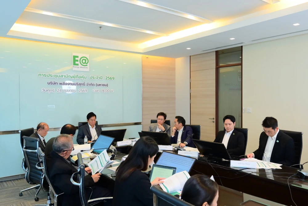 บริษัท พลังงานบริสุทธิ์ จำกัด (มหาชน) หรือ EA เปิดเผยผลการประชุมสามัญผู้ถือหุ้นประจำปี 2569 เมื่อวันที่ 24 เมษายน 2569 โดยที่ประชุมผู้ถือหุ้นมีมติรับทราบและอนุมัติทุกวาระที่ต้องลงคะแนนตามที่คณะกรรมการเสนอ สะท้อนความเชื่อมั่นของผู้ถือหุ้นต่อทิศทางการดำเนินธุรกิจ ฐานะทางการเงิน และแผนบริหารจัดการของบริษัท ภายหลังบริษัทเดินหน้ามาตรการเสริมสภาพคล่องและบริหารภาระหนี้อย่างต่อเนื่อง