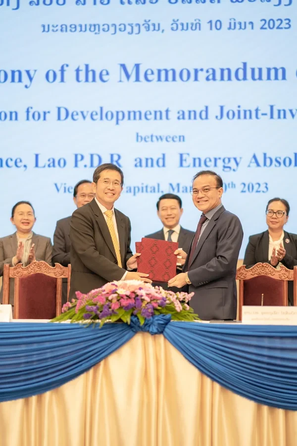 เมื่อวันที่ 10 มีนาคม 2566 ได้มีการจัดงานพิธีลงนามบันทึกข้อตกลง (Memorandum of Agreement) ว่าด้วย ความร่วมมือเพื่อการลงทุนในธุรกิจด้านพลังงานและกิจกรรมที่เกี่ยวข้องร่วมกับรัฐบาลแห่ง สปป.ลาว โดยกระทรวงการเงิน(กระทรวงการคลัง) แห่ง สปป.ลาว จัดตั้งบริษัทร่วมทุนเพื่อเพิ่มขีดความสามารถทางด้านพลังงานสะอาด โครงสร้างสายส่ง และพัฒนาระบบขนส่ง EV เชิงพาณิชย์ของ สปป.ลาว อย่างครบวงจร เพื่อยกระดับสู่สังคมไร้มลพิษ ได้รับเกียรติจาก ฯพณฯ ท่านสะเหลิมไซ กมมะสิด รองนายกรัฐมนตรี และรัฐมนตรีกระทรวงการต่างประเทศ ของ สปป. ลาว เป็นประธานในพิธี โดยมี ดร. ภูทนูเพชร ไซสมบัตร รองรัฐมนตรีกระทรวงการเงิน ( กระทรวงการคลัง) และนายสมโภชน์ อาหุนัย ประธานเจ้าหน้าที่บริหาร บริษัท พลังงานบริสุทธิ์ จำกัด (มหาชน) ร่วมในพิธีลงนาม ณ โรงแรม ลาว พลาซ่า นครหลวงเวียงจันทน์ สปป. ลาว
