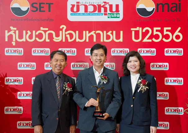 คุณเกศรา มัญชุศรี กรรมการและผู้จัดการ (ที่ 3 จากซ้าย) ตลาดหลักทรัพย์แห่งประเทศไทย มอบรางวัล “หุ้นขวัญใจมหาชน ตลาดหลักทรัพย์ เอ็ม เอ ไอ (mai)” ให้กับ บมจ.พลังงานบริสุทธิ์ (EA) โดยมี คุณสมโภชน์ อาหุนัย ประธานเจ้าหน้าที่บริหาร (ที่ 2 จากซ้าย) เป็นตัวแทนรับรางวัล ซึ่งทาง EA ได้รับรางวัลในครั้งนี้เป็นปีที่ 2 แล้ว โครงการดังกล่าว จัดขึ้นโดยหนังสือพิมพ์ข่าวหุ้นธุรกิจร่วมกับตลาดหลักทรัพย์แห่งประเทศไทย